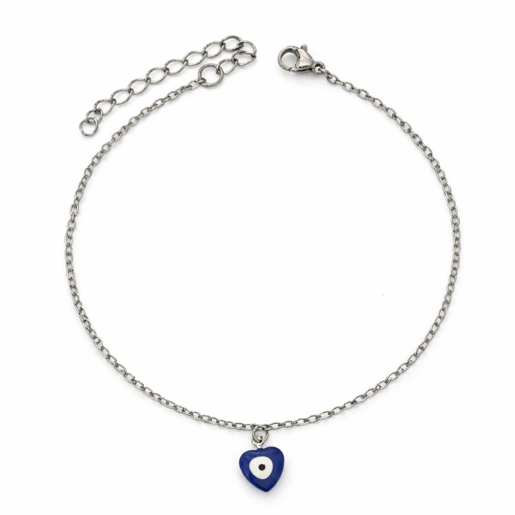 Tornozeleira Coração Olho Grego em Aço Inox