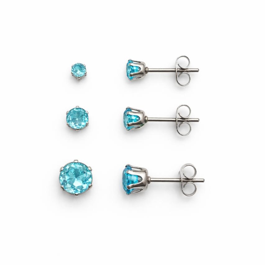 Trio de Brinco Ponto de Luz Azul Piscina em Aço Inox