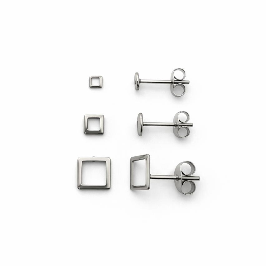 Trio de Brinco Quadrado Vazado em Aço Inox