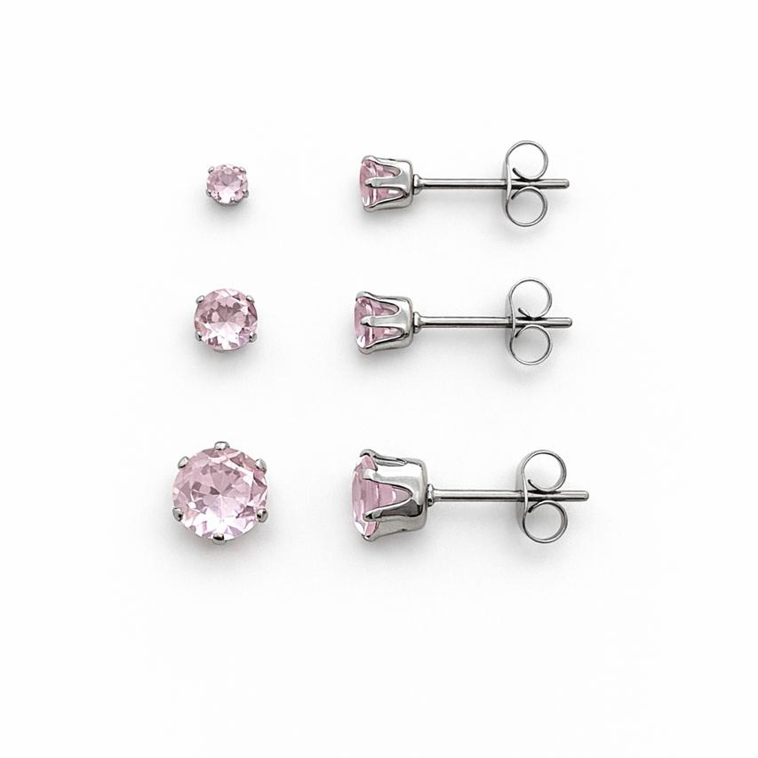 Trio de Brinco Ponto de Luz Rosa Claro em Aço Inox