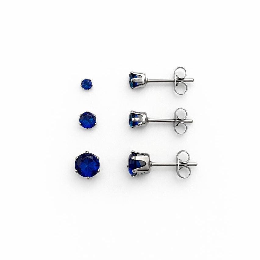 Trio de Brinco Ponto de Luz Safira em Aço Inox