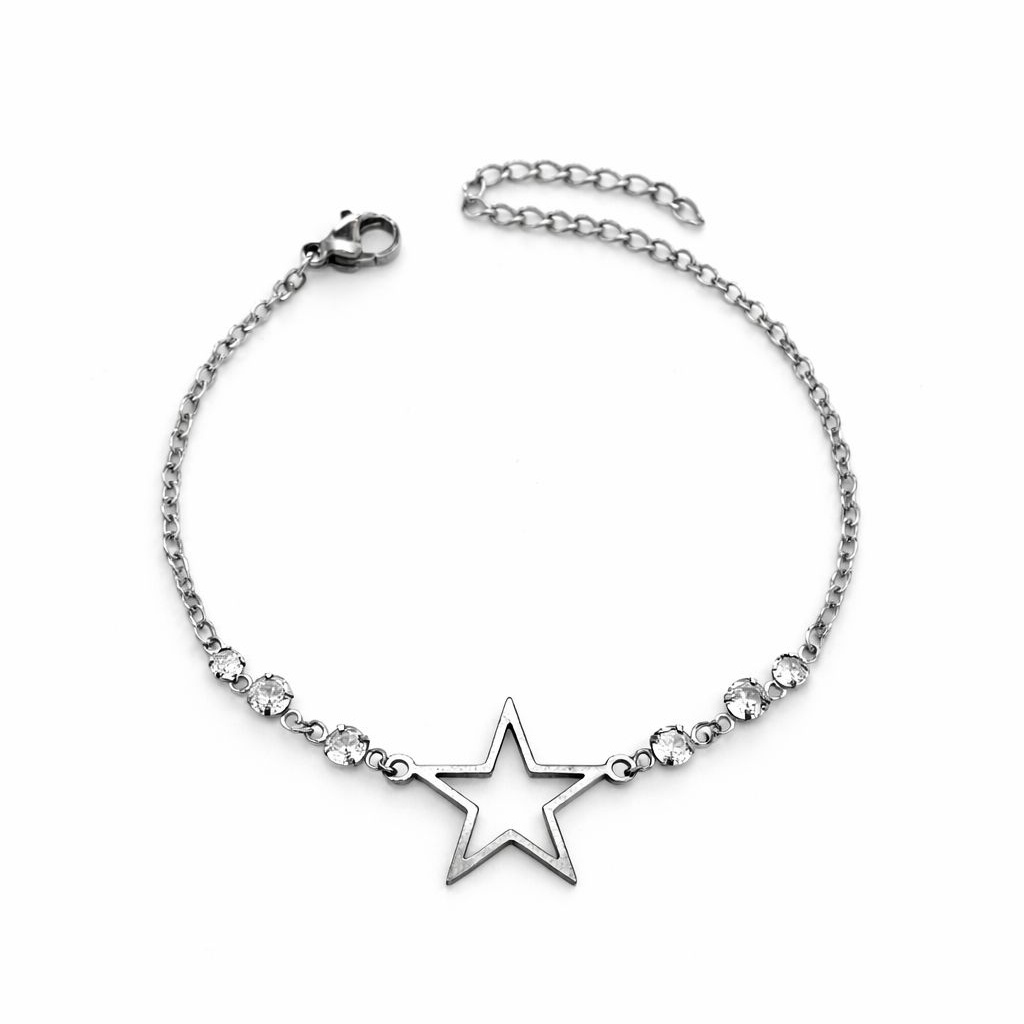 Pulseira Estrela Vazada c/ Cristal em Aço Inox