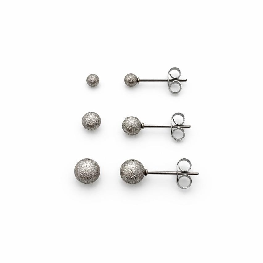 Trio de Brinco Bolinha Diamantada em Aço Inox