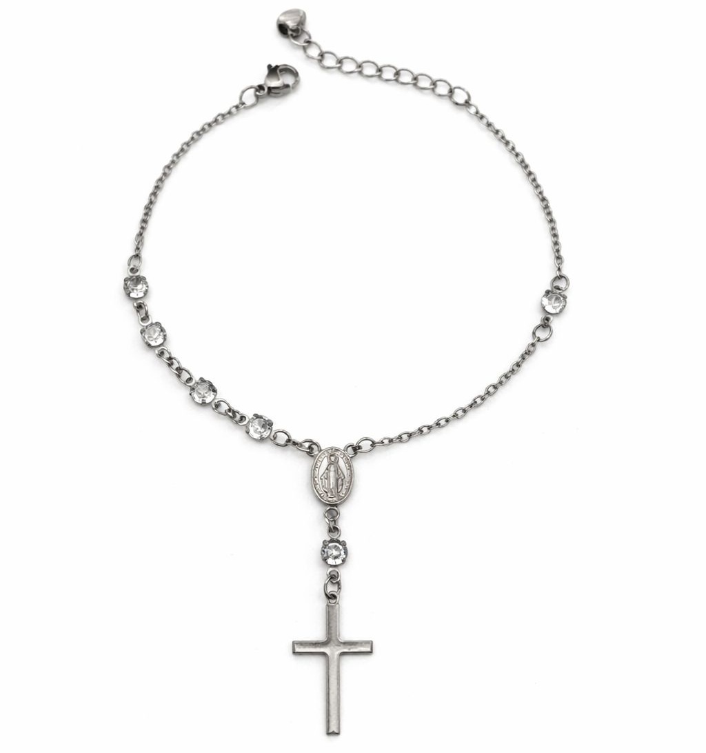 Pulseira Terço com Cristal em Aço Inox